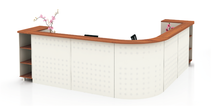 產(chǎn)品型號(hào):LM008 前臺(tái)系列 產(chǎn)品規(guī)格:W3100*D3100/700*H1050 產(chǎn)品材質(zhì):E1級(jí)中纖板、貼天然實(shí)木皮,實(shí)木封面,“易涂寶”牌環(huán)保油漆 產(chǎn)品顏色: